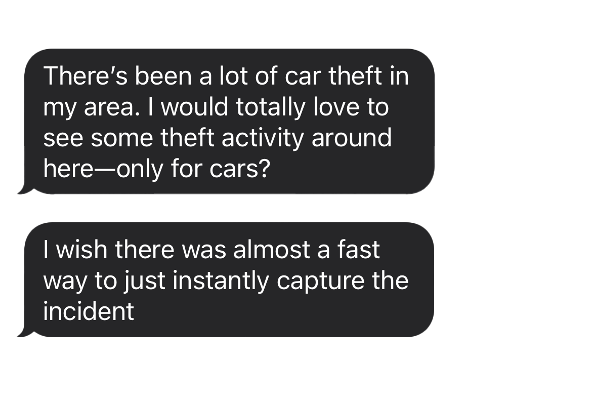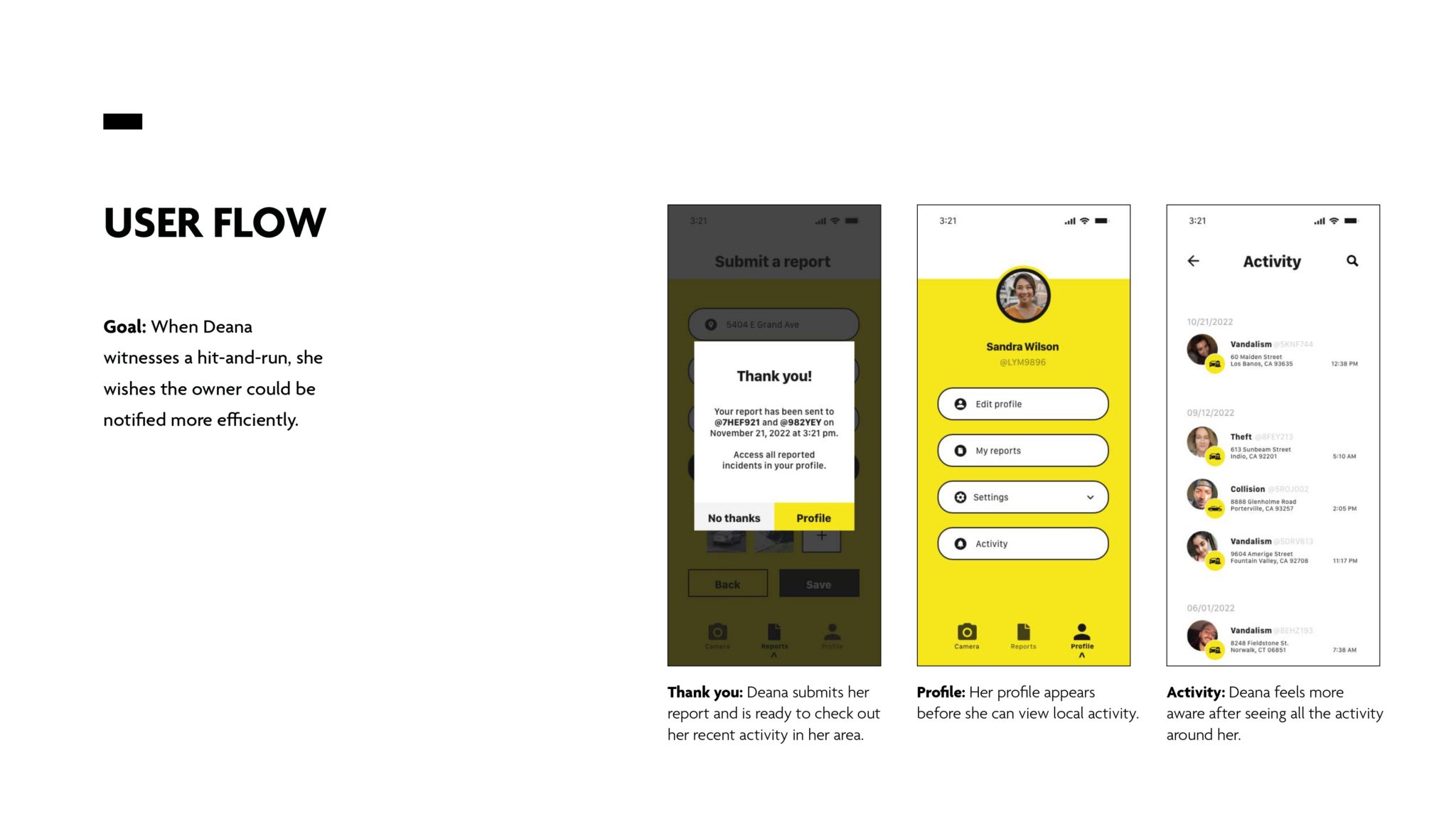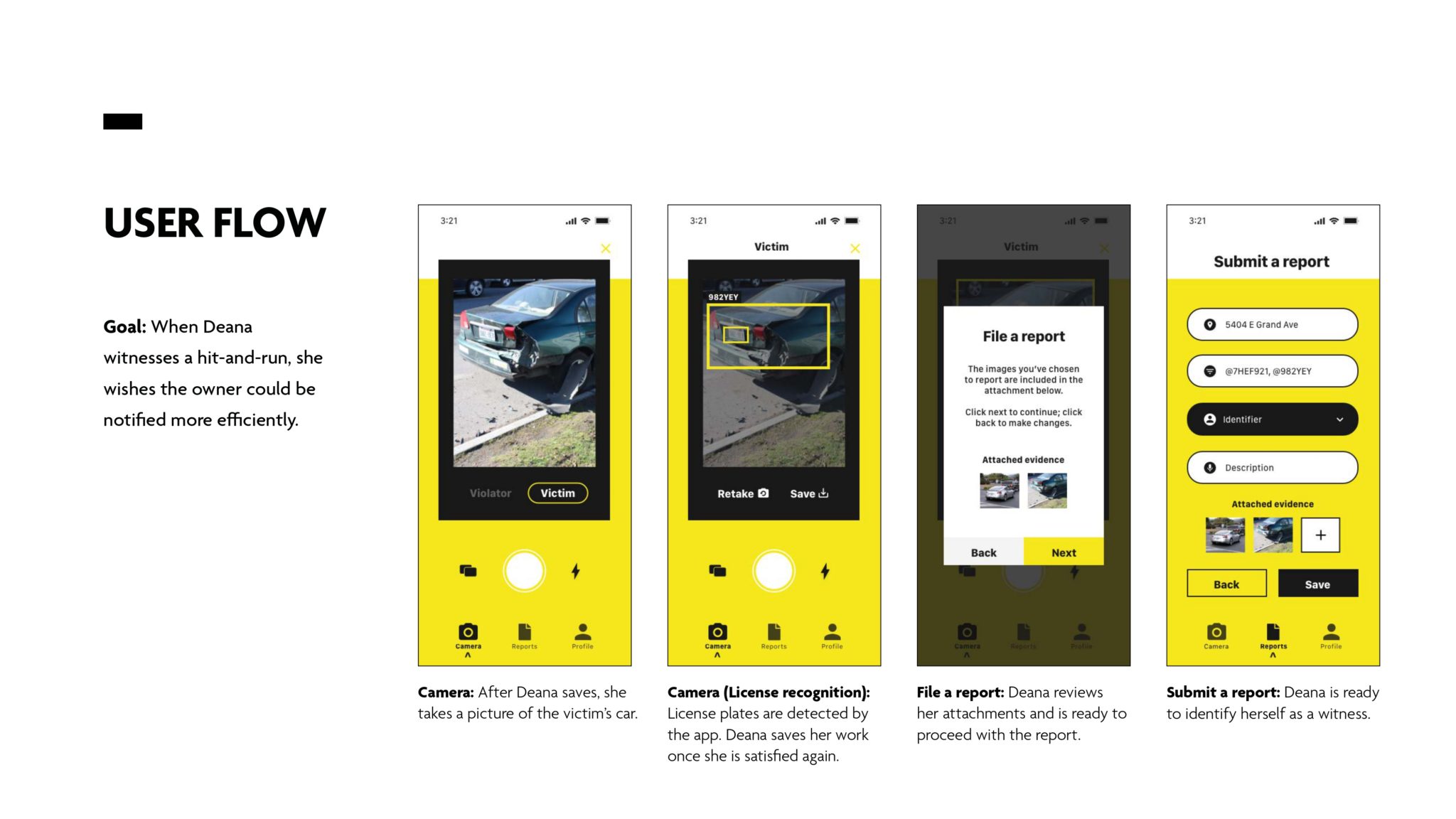 Users want an easy-to-use platform that connects witnesses and vehicle owners to automobile theft and damage reports.