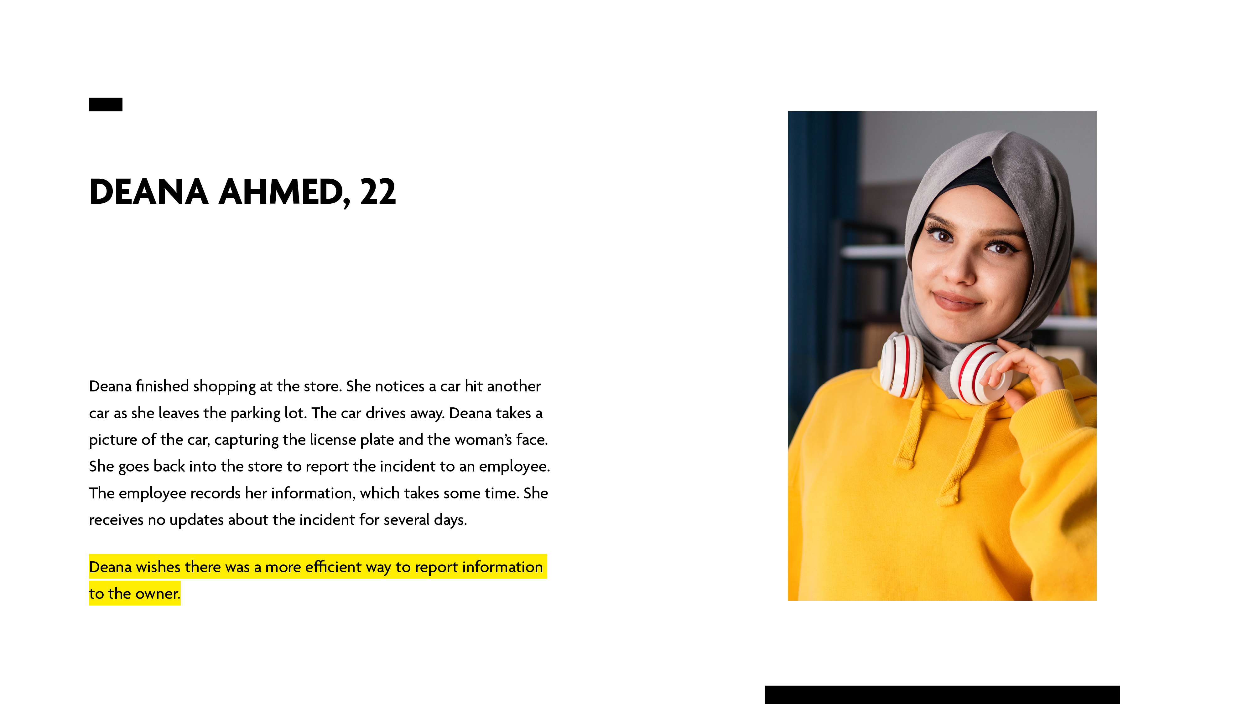 Based on prior experience from two hit-and-runs, this case study analyzes ways to better connect witnesses and vehicle owners to automobile theft and damage reports.