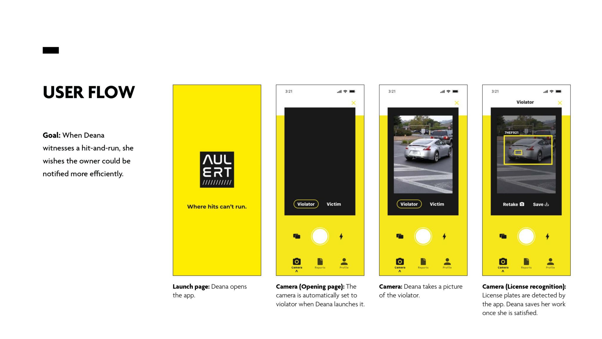 Aulert, “Where hits never run,” is a mobile application that connects witnesses and vehicle owners to automobile theft and damage reports.